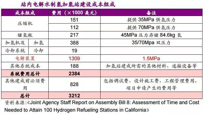 加州能源局的研究數(shù)據(jù)表明,HyGen電解水制氫加氫站總建設(shè)成本超過(guò)320萬(wàn)美元,遠(yuǎn)遠(yuǎn)超過(guò)外供氫高壓氫氣加氫站(200萬(wàn)美元)和液氫加氫站(280萬(wàn)美元),其中電解水制氫裝置成本約131萬(wàn)美元。