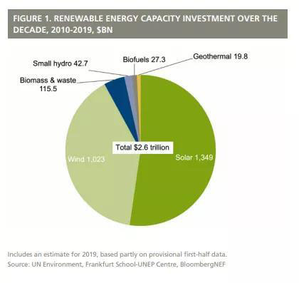 法蘭克福/內(nèi)羅畢,2019年9月5日——根據(jù)今日最新公布的數(shù)據(jù),全球在過去10年間可再生能源產(chǎn)能投資 –2010年至2019年間- 將逐步達(dá)到2.6萬億美元,其中太陽能產(chǎn)能遠(yuǎn)超其他新能源發(fā)電技術(shù)。