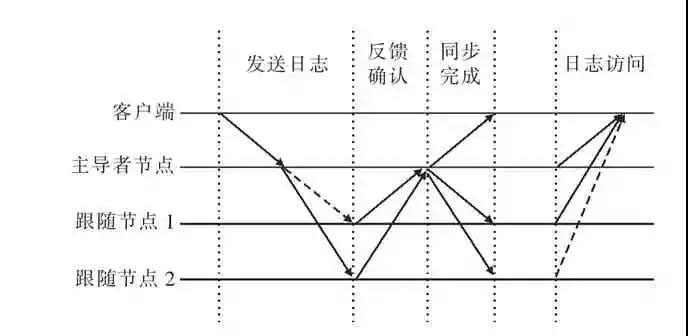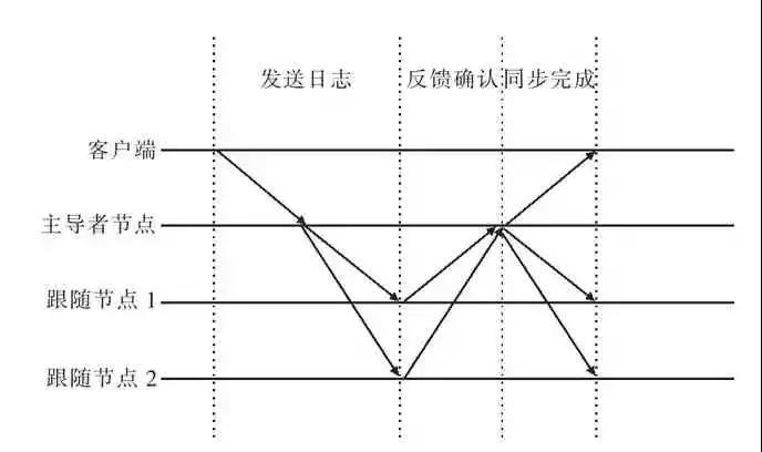 RAFT 算法的日志復制流程總體遵循狀態(tài)機復制的原則和流程,其核心在于節(jié)點內置時鐘周期及跟隨者節(jié)點反饋機制。其中,內置時鐘周期主要服務于節(jié)點選舉機制,確保主導節(jié)點的輪換及故障宕機情況下的系統(tǒng)可持續(xù)性。