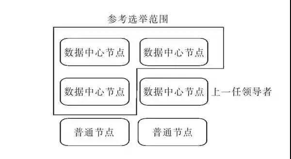 根據國網公司提出的“三型兩網”發(fā)展戰(zhàn)略,各省市都在積極探索推進“三站合一”建設方案,即將原有變電站改造為變電站、充換電站、數據中心的多功能合一站所。傳統(tǒng)RAFT 共識算法中的選舉機制不考慮節(jié)點間的差異性,具有普適性的特點。考慮到數據中心相較于區(qū)塊鏈中其他節(jié)點具備的高性能、高可靠性優(yōu)勢,極為適合作為領導者節(jié)點。同時,未來數據中心將在各地區(qū)進行多點布局,因此本文在傳統(tǒng)RAFT 算法的基礎上,將選舉機制中可作為候選者的節(jié)點由鏈中所有節(jié)點縮減為數據中心站所在節(jié)點。即當主導者節(jié)點時鐘周期滿后,由布置在其他數據中心站的候選節(jié)點進行選舉,非數據中心站節(jié)點將不再有資格作為候選者節(jié)點或領導者節(jié)點,如圖6 所示。