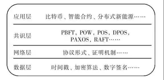 區(qū)塊鏈技術所具有的多方維護特性使得其在各個行業(yè)領域得到了廣泛應用,有助于打破信息數據壁壘,推動顛覆性業(yè)務整合。區(qū)塊鏈層次架構如圖1 所示,主要包含數據層、網絡層、共識層、應用層[9]。其中,數據層通過加密算法和數字簽名等手段對數據進行處理,以區(qū)塊形式進行數據信息存儲。網絡層使區(qū)塊鏈中各個節(jié)點通過網絡通信協議進行約定,以及對數據傳輸的真實性、合法性進行驗證。共識層基于以POW 機制為代表的共識機制來確保數據的正確性和系統(tǒng)的可用性,共識機制的算法決定了該區(qū)塊鏈系統(tǒng)的整體復雜度以及相應的信息傳輸速度。在應用層,基于智能合約的可編程性特點,可以在許多領域及產業(yè)獲得相關應用,且合約具有的自動判斷特性可以免除第三方的監(jiān)督。