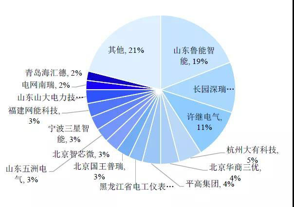 自2014年國家電網(wǎng)向民間資本開放電動車充電樁市場,一大批充電樁企業(yè)應(yīng)運而生。由于除高技術(shù)含量的IGBT等核心部件主要依賴外資采購?fù)猓渌悴考募夹g(shù)門檻不高,產(chǎn)品差異化程度不明顯。目前國內(nèi)充電樁領(lǐng)域相關(guān)公司數(shù)量超過300家,供應(yīng)商數(shù)量多。根據(jù)國網(wǎng)招標(biāo)情況,2018年三批招標(biāo)14262臺充電樁中共有31家企業(yè)中標(biāo)。其中,山東魯能智能中標(biāo)最多,占比達19%;其次是長園深瑞繼保和許繼電氣,占比均為11%。其余的廠商各占1%-5%不等的份額,競爭格局嚴(yán)峻。