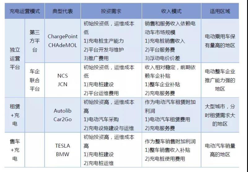 國內(nèi)充電運營主要有四大模式:政府主導(dǎo)模式、企業(yè)主導(dǎo)模式、混合模式、眾籌模式。政府主導(dǎo)模式,即政府作為投資主體,負責(zé)充電樁的建設(shè)與運營,有利于組織有序、集約化發(fā)展,但是會長期增加政府財政壓力,不利于行業(yè)規(guī)?;l(fā)展。企業(yè)主導(dǎo)模式由作為市場主體的企業(yè)投資與運營充電樁,該模式下的電動汽車充電樁運營模式運營管理效果要明顯高于政府主導(dǎo),但是對于企業(yè)自身資金實力要求較高,且盈利能力受政策的影響較大。政府與企業(yè)混合運營模式能夠減少各自模式的不足,雙方協(xié)調(diào)要求高,企業(yè)受到的約束會較多。眾籌模式是指運營平臺整合企業(yè)、社會、政府等多方面力量,利用互聯(lián)網(wǎng)思維的眾籌模式推進充電樁建設(shè),其優(yōu)點在于可以提高社會資源利用率,并且有助于提高各個環(huán)節(jié)的工作效率,在服務(wù)上也更注重用戶需求。