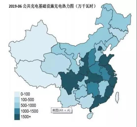 公共樁充電量熱力圖與分布圖并不完全匹配,2019年6月,廣東、江蘇和陜西充電量位居前三名,四川、福建、山東和湖北緊隨其后,而北京、上海兩大公共樁保有量大省僅位列第9、10名。這說明一二線城市之間在充電設(shè)施建設(shè)與電動汽車組成結(jié)構(gòu)上有很大差異:北京、上海等一線城市充電設(shè)施建設(shè)相對完善甚至較為超前;電動乘用車在北京、上海推廣情況好,乘用車通常會配建私人樁,因此公共樁使用率較低,而陜西、四川等地公共樁主要為滿足公交車充電需求,因此使用率較高。
