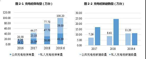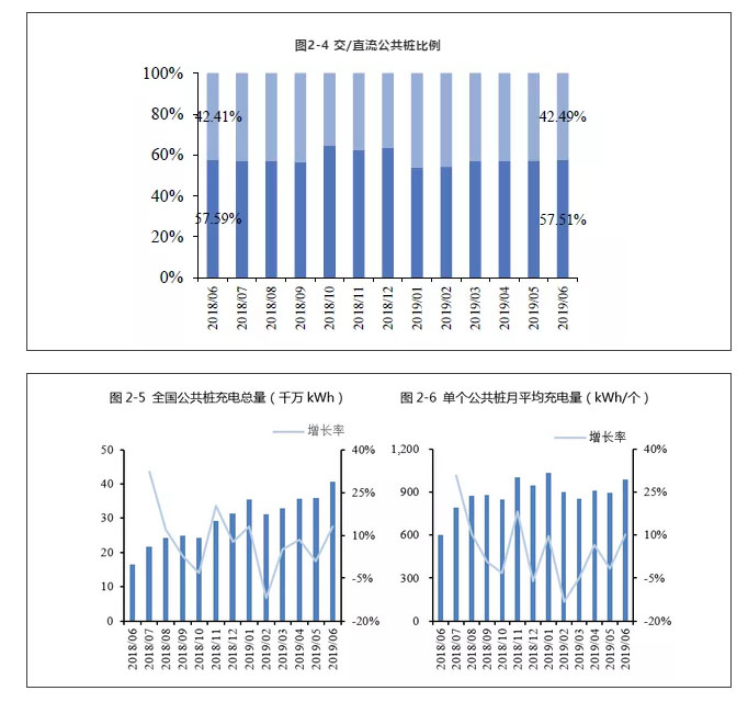 從私人充電樁領(lǐng)域看,2019年6月私人充電樁數(shù)量較2018年同期增加27萬臺,月均新增2.25萬臺。私人充電樁中交流樁占絕大多數(shù)。
