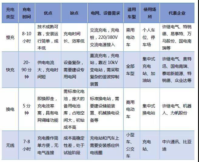 動力電池充電模式多樣,根據(jù)充電速度和充電規(guī)模,目前電動汽車充電方式主要有四種:慢充(交流充電)、快充(直流充電)、更換電池(換電站)和無線充電。