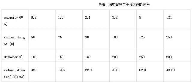 如果按巖石密度2600kg/m3來折算,半徑125米的儲能電站可以儲電8GWh,這已經(jīng)可以與德國境內(nèi)最大的Goldisthal抽水蓄能電站(8.4GWh)相比了。而如果半徑達(dá)到250米,理論上就可以儲電124GWh,基本可以與世界上大多數(shù)抽水蓄能電站相匹敵。