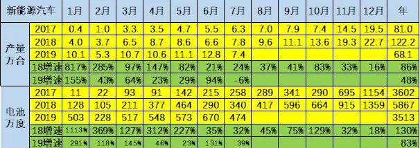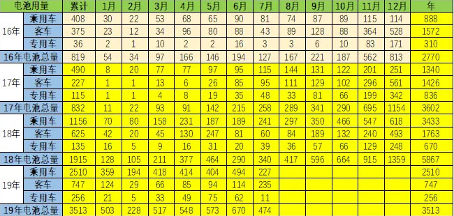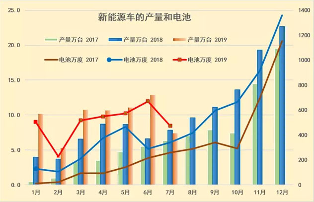 從2018年年末到19年1-7月的汽車走勢看,2019年的電池需求是較好增長狀態(tài), 2019年新能源車新補(bǔ)貼政策的波段釋放需求和實(shí)現(xiàn)供需的逐步標(biāo)準(zhǔn)提升的放量的拉動(dòng)效果較好。