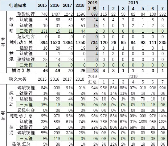 中國儲(chǔ)能網(wǎng)訊:19年1-7月的延續(xù)期的開局超強(qiáng)。19年1季度的延續(xù)期的開局超強(qiáng),4-6月仍能在退坡后延續(xù)高增長,體現(xiàn)2019年開局的延續(xù)槍補(bǔ)貼行情的特征。7月電池需求的三元鋰電池大幅下降,磷酸鐵鋰暴漲,補(bǔ)貼效應(yīng)凸顯。