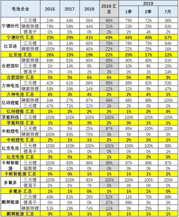 寧德時(shí)代上市前后很強(qiáng),1-7月也很優(yōu)秀,達(dá)到49%。而比亞迪的電池需求也比2018年大幅增長,份額達(dá)到22%,這也是客車的體系支撐對比亞迪在7月稍低。