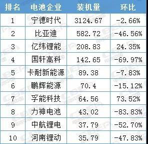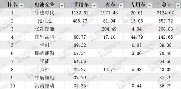 2019年7月動力電池裝機量TOP10企業(yè)數據