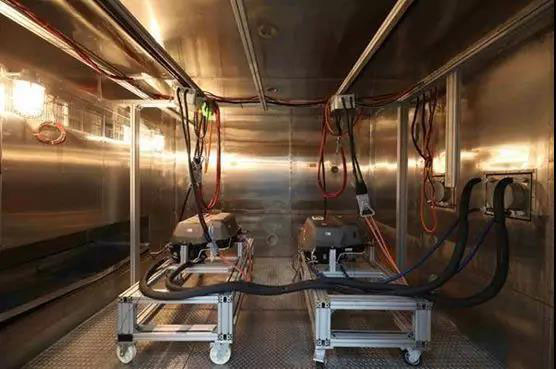 在通用汽車(chē)上海電池測(cè)試實(shí)驗(yàn)室,單體電池測(cè)試實(shí)驗(yàn)室有96個(gè)測(cè)試通道,是通用汽車(chē)全球電池測(cè)試系統(tǒng)的重要組成部分,接近于美國(guó)本土通用汽車(chē)沃倫實(shí)驗(yàn)室的120個(gè)測(cè)試通道。測(cè)試項(xiàng)目主要包括溫度測(cè)試(零下40°C~85°C)和充放電測(cè)試。電池包測(cè)試實(shí)驗(yàn)室還可進(jìn)行電池功率特性檢測(cè)和溫濕度耐久試驗(yàn)。以溫濕度耐久試驗(yàn)為例,電池包會(huì)在溫箱模擬出的各種惡劣溫濕度環(huán)境中測(cè)試幾個(gè)月之久。