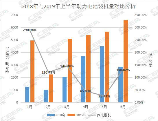 由上圖可知,與2018年同期相比,2019年上半年各月的裝機量均呈現出明顯的增長態(tài)勢,同比漲幅最低25.71%,最高達290.94%。