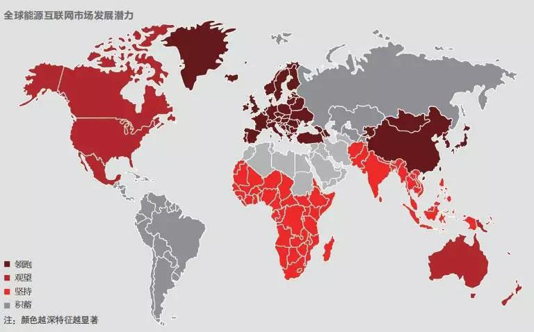 聚焦中國,可再生能源相關(guān)產(chǎn)業(yè)鏈增加值、物聯(lián)網(wǎng)發(fā)展所帶動的能源產(chǎn)業(yè)GDP增量、微網(wǎng)市場的大規(guī)模增長,以及新能源供應(yīng)和能效提升的新增投資,將聚合為巨大的能源互聯(lián)網(wǎng)市場增量。至2020年,中國能源互聯(lián)網(wǎng)的市場規(guī)模預(yù)計將超過9400億美元,約占當年全國GDP的7%。歐洲和美國能源互聯(lián)網(wǎng)的市場規(guī)模2020年預(yù)計約為1.1萬億美元。中國能源互聯(lián)網(wǎng)市場與歐美并駕齊驅(qū),幾乎占據(jù)全球的半壁江山。從市場成熟度和發(fā)展?jié)摿蓚€維度評價,中國能源互聯(lián)網(wǎng)發(fā)展均領(lǐng)跑全球。