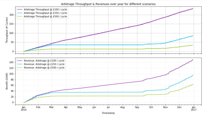 將多個收入流疊加以實現(xiàn)投資者滿意的投資回報率的必要性,意味著在快速變化的環(huán)境中考慮這些吞吐量的限制,類似于執(zhí)行價格設定。一些收入流采用了很低的利用率,如靜態(tài)頻率響應。而其他收入流需要更高的利用率。