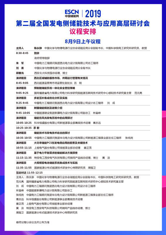 中國儲(chǔ)能網(wǎng)訊:為進(jìn)一步推進(jìn)儲(chǔ)能在發(fā)電側(cè)上的項(xiàng)目規(guī)劃、安全施工、系統(tǒng)集成技術(shù)應(yīng)用、運(yùn)營模式、電網(wǎng)接入、標(biāo)準(zhǔn)體系、風(fēng)光儲(chǔ)電站考核機(jī)制、調(diào)度模式、儲(chǔ)能項(xiàng)目備案、審批流程和市場環(huán)境等方面展開深入討論,中國化學(xué)與物理電源行業(yè)協(xié)會(huì)儲(chǔ)能應(yīng)用分會(huì)聯(lián)合中國電力工程顧問集團(tuán)西北電力設(shè)計(jì)院有限公司、西安北大科技園、中國科學(xué)院電工研究所儲(chǔ)能技術(shù)組、深圳市科陸電子科技股份有限公司等單位聯(lián)合主辦“第二屆全國發(fā)電側(cè)儲(chǔ)能技術(shù)與應(yīng)用高層研討會(huì)”,現(xiàn)將有關(guān)議程通知如下: