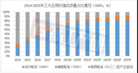 3)三元?jiǎng)恿﹄姵爻鲐浟勘壤^(guò)磷酸鐵鋰電池,2018年的出貨量中約65%為三元?jiǎng)恿﹄姵兀?