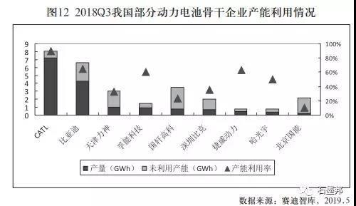 電池產(chǎn)能快速擴(kuò)大導(dǎo)致絕大部分企業(yè)產(chǎn)能利用率不高。2018年第三季度,CATL產(chǎn)能利用率達(dá)到了90%,比亞迪、孚能科技、捷威動(dòng)力、哈光宇的產(chǎn)能利用率在50%-60%左右,而捷威動(dòng)力和哈光宇的產(chǎn)能還較低,包括天津力神、國軒高科、深圳比克、北京國能等在內(nèi)的一大批企業(yè)的產(chǎn)能利用率都 在30%以下。