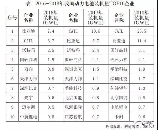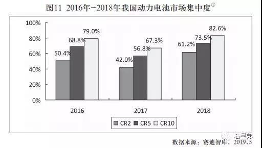 2018年,我國實(shí)現(xiàn)新能源汽車配套的動(dòng)力電池廠商下降至90家,較2016年減少一半,較2017年下降33%。與此同時(shí),動(dòng)力電池市場(chǎng)集中度不斷提高,正逐步向?qū)幍聲r(shí)代、比亞迪兩家龍頭企業(yè)集中。