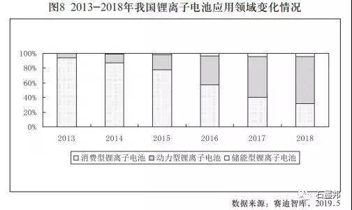 從2015年開始,隨著動(dòng)力型鋰離子電池產(chǎn)量迅猛增長,我國鋰離子電池產(chǎn)業(yè)結(jié)構(gòu)發(fā)生了顯著變化,消費(fèi)型鋰離子電池獨(dú)大的市場(chǎng)格局被打破。從鋰離子電池出貨量看,2018年我國鋰離子電池總出貨量達(dá)到了102GWh,同比增長27%。