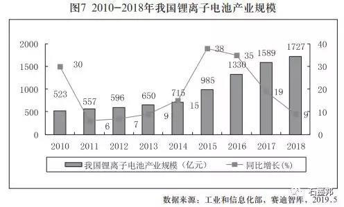 2018年我國鋰離子電池產(chǎn)業(yè)規(guī)模達(dá)到1727億元,再次創(chuàng)下歷史新高,同比增長9%,增速較2017年回落10個(gè)百分點(diǎn),延續(xù)穩(wěn)步增長勢(shì)頭。產(chǎn)業(yè)規(guī)模增速較產(chǎn)量增速低了近17個(gè)百分點(diǎn),主要原因是2018年動(dòng)力電池價(jià)格出現(xiàn)了明顯下滑。