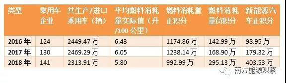 7月2日,工信部公布了2018年度中國乘用車企業(yè)平均燃料消耗量與新能源汽車積分情況(以下簡稱雙積分核算表):平均燃料消耗量實際值為5.80升/100公里,燃料消耗量正積分為992.99萬分,燃料消耗量負積分為295.13萬分,新能源汽車正積分為403.53萬分。新能源汽車正積分從2016年的98.95萬分增至403.53萬分,遠多于燃料消耗負積分。