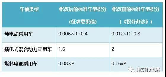 征求意見稿中下調(diào)了單車積分。在征求意見稿提出的新能源汽車車型積分計算方法中,同樣里程的純電動乘用車所獲的積分比以前的《積分辦法》下降,弱化了續(xù)航里程對新能源汽車車型積分的影響。純電動乘用車和燃料電池乘用車的單車積分直接減半,插電式混合動力乘用車單車積分由原來的2分降低為1.6分。純電動乘用車標(biāo)準(zhǔn)車型積分上限亦由原來的5分,降低為3.4分。