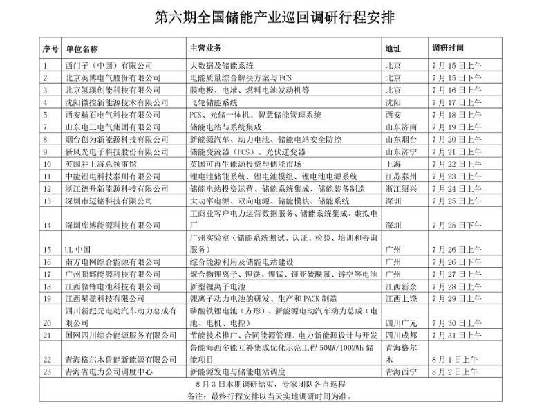 為進(jìn)一步了解國內(nèi)儲(chǔ)能產(chǎn)業(yè)技術(shù)路線、市場格局與相關(guān)項(xiàng)目建設(shè)情況,并向行業(yè)主管部門提出合理化建議。中國化學(xué)與物理電源行業(yè)協(xié)會(huì)儲(chǔ)能應(yīng)用分會(huì)決定聯(lián)合中國電工技術(shù)學(xué)會(huì)電池專業(yè)委員會(huì)、中國儲(chǔ)能網(wǎng)將于近期組織開展2019年度第六期全國儲(chǔ)能產(chǎn)業(yè)巡回走訪調(diào)研工作,現(xiàn)將具體行程安排通知如下: