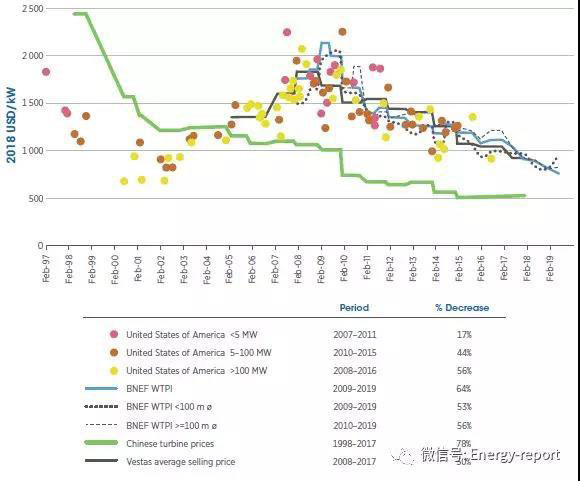 1997~2018年風機價格指數(shù)和價格趨勢