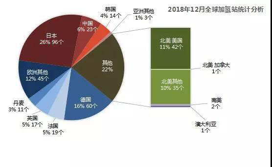 二、加氫站建設(shè)成本雖高,但全球規(guī)劃建設(shè)超435座。截止到2018年底,全球加氫站數(shù)目達(dá)到369座,其中,歐洲152座,亞洲136座,北美78座。日本、德國和美國位居前三位,中國排名第四。