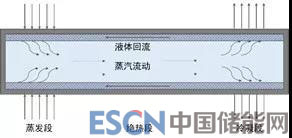 熱管是一種依靠氣液相變原理的高效傳熱元件。液體工質(zhì)在受熱端蒸發(fā)汽化, 在壓差驅(qū)動下流向另一端并在冷凝段凝結(jié)放熱, 冷凝后的工質(zhì)通過毛細(xì)力沿多孔材料返回蒸發(fā)段。由于其具有超高的導(dǎo)熱系數(shù),目前已被廣泛應(yīng)用與能源化工、航天航空、電力電子等領(lǐng)域,在動力電池?zé)峁芾眍I(lǐng)域是一顆“潛力新星”。