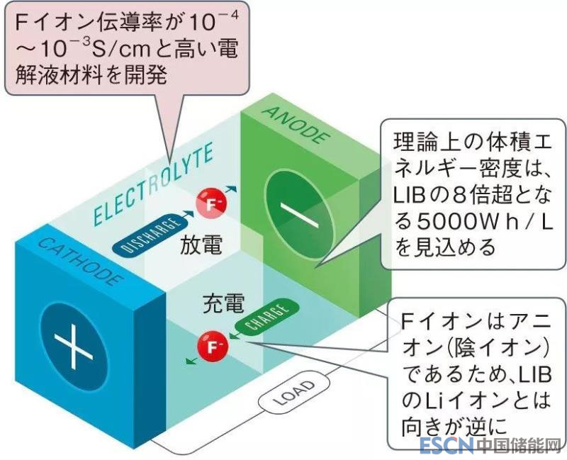 本田技研工業(yè)(本田)于2018年12月與美國宇航局及其他公司合作開發(fā)了氟離子二次電池,這是一項(xiàng)突破,即使在室溫下也能開發(fā)出具有高離子導(dǎo)電率的電解質(zhì)。F離子二次電池的體積能量密度為5000Wh/L,是鋰離子二次電池的8倍以上。如果它可以投入實(shí)際使用,社會(huì)影響非常高。
