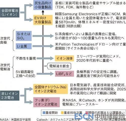對(duì)下一代高能量密度二次電池的需求正在增長,目前,為了消費(fèi)電子產(chǎn)品開發(fā)的全固態(tài)電池已經(jīng)開始,但多種的材料技術(shù)開發(fā)也在同時(shí)并行加速。(圖1)