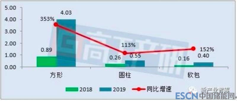 從電池形狀來看,2019年1月方形電池裝機(jī)電量約4.03GWh,同比增長353%;軟包電池裝機(jī)電量約0.40GWh,同比增長152%;圓柱電池裝機(jī)電量約0.55GWh,同比增長113%。