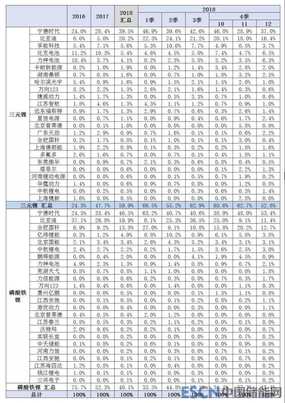5. 2018年的各類(lèi)車(chē)電池需求特征