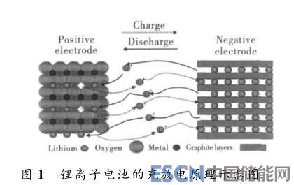 鋰離子電池的工作原理如圖1所示,以石墨為負極、LiCoO2為正極。充電時,鋰離子從正極材料中脫出,在電化學勢梯度的驅使下經過電解液向負極遷移,電荷平衡要求等量的電子在外電路下從正極流向負極,到達負極后得到電子的鋰離子再嵌入到負極材料晶格中;放電時則以相反過程進行,即鋰離子離開負極晶格,嵌入正極重新形成LiCoO2。