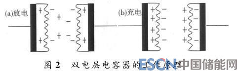 充電時,電子通過外電源從正極傳到負極,使正極和負極分別帶正電和負電,同時電解質溶液本體中的正負離子分離并移動到電極表面與電極表面的電荷層對峙,形成雙電層;放電時,電子通過負載由負極流到正極,正負離子則從電極表面釋放并返回電解質溶液本體,同時雙電層消失。由此可見雙電層電容器利用電極和電解質界面的雙電層來存儲電荷,充放電過程始終是物理過程,不發(fā)生電化學反應,故其具有性能穩(wěn)定、充放電時間短、循環(huán)壽命長、功率密度大、高低溫性能良好等優(yōu)點。
