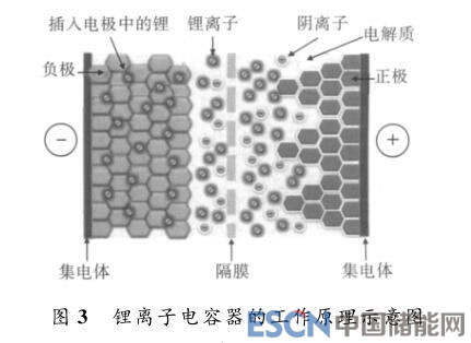 富士重工的Hiromoto T等提出了鋰離子電容器的工作原理,如圖3所示。