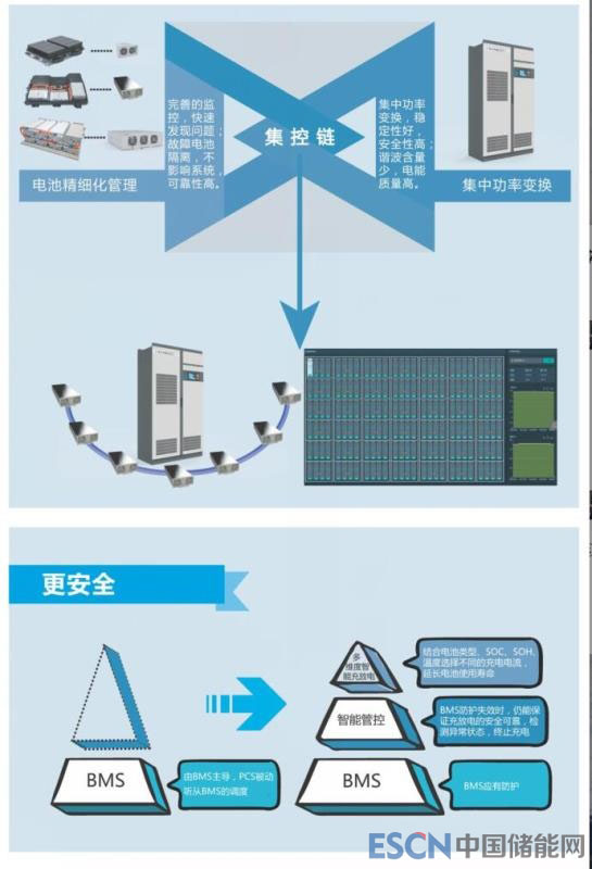 集控鏈解決方案具有完善的管控,精準(zhǔn)定位,快速發(fā)現(xiàn)問題;故障電池智能隔離,不影響系統(tǒng),可靠性高;電池更換方便,故障修復(fù)快;集中功率變換單元接入交流電網(wǎng),穩(wěn)定性好,安全性高,諧波含量少,電能質(zhì)量高等特點(diǎn)。