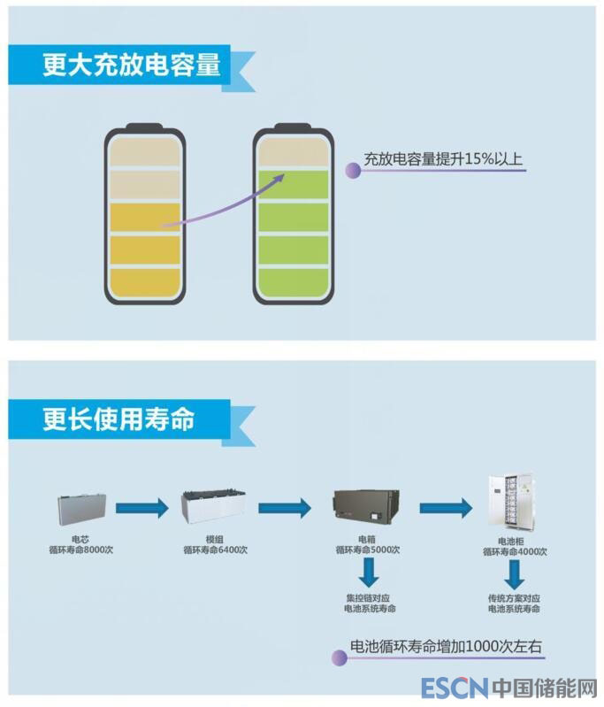 儲(chǔ)能電站每臺(tái)PCS直流側(cè)接入的電芯多達(dá)幾千只,循環(huán)過程中極易出現(xiàn)某只單體電池衰減過快,充放電時(shí)達(dá)到截止電壓,導(dǎo)致儲(chǔ)能系統(tǒng)停止工作。以精石科技為代表推出的集控鏈解決方案,一對(duì)一單獨(dú)控制,充放電容量提升15%以上,電池循環(huán)壽命增加1000次左右。同時(shí),我國動(dòng)力電池退役漸成規(guī)模,集控鏈方案的推出,可節(jié)省梯次電池的拆解重組費(fèi)用250元/kWh—300元/kWh,智能管控和多維度智能充放電,從根源提高電池的安全性,解決梯次電池因一致性差、SOC估算不準(zhǔn)等而帶來的安全隱患問題。