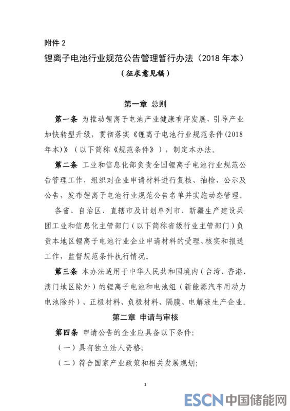2.鋰離子電池行業(yè)規(guī)范公告管理暫行辦法(2018年本)(征求意見稿)