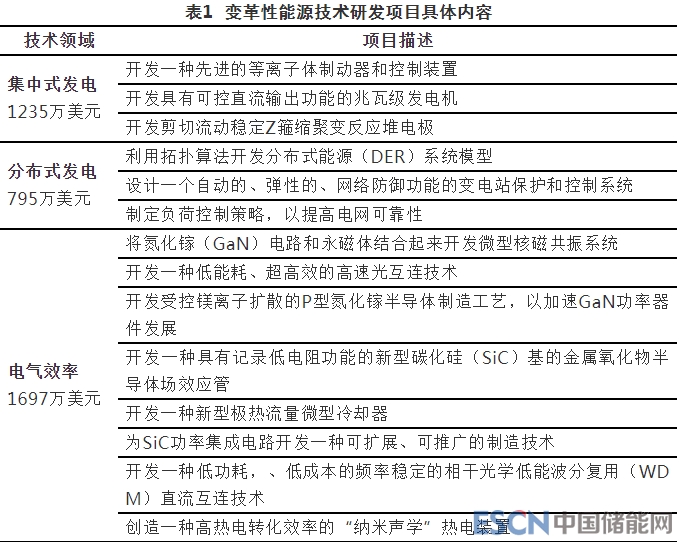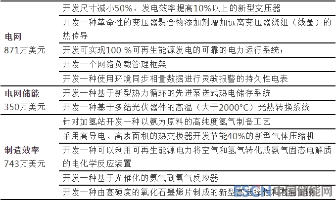 近日,美國能源部先進能源研究計劃署(ARPA-E)宣布第四輪開放式招標(biāo)計劃(OPEN 2018),即資助9800萬美元用于遴選的40項變革性能源技術(shù)開發(fā)項目,旨在整合美國頂尖能源創(chuàng)新者(科學(xué)家、工程師等)研究力量,促進顛覆性能源技術(shù)的創(chuàng)新,以完善能源系統(tǒng),保障美國能源安全和全球能源主導(dǎo)地位。本次資助涵蓋了包括集中式發(fā)電、分布式發(fā)電、電網(wǎng)儲能、制造效率等在內(nèi)的九大技術(shù)領(lǐng)域,具體內(nèi)容參見表1。ARPA-E除了設(shè)立領(lǐng)域主題研究計劃外,還每三年開展一次開放式項目招標(biāo)計劃,支持非共識探索研究和機會型探索研究,避免遺漏在主題研究領(lǐng)域之外的創(chuàng)新思想。2009年第一輪開放式招標(biāo)(OPEN 2009)向37個項目資助了1.67億美元,2012年第二輪(OPEN2012)向66個項目資助了1.3億美元,2015年第三輪(OPEN 2015)向41個項目資助了1.25億美元。