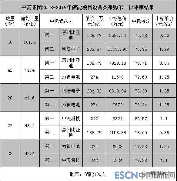 中國儲能網(wǎng)訊:12月6日,平高集團發(fā)布2018-2019第一批儲能項目設(shè)備類采購招標(biāo)結(jié)果,由于這是江蘇電網(wǎng)側(cè)儲能的大工程,平高此番高達352MWh的儲能項目招標(biāo),一直是業(yè)界角力的最大節(jié)點。通過招標(biāo),比亞迪、中天、科陸、力神中標(biāo),其中比亞迪成為最大贏家。各家中標(biāo)大致如下: