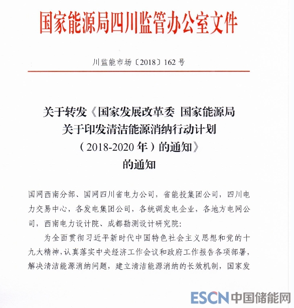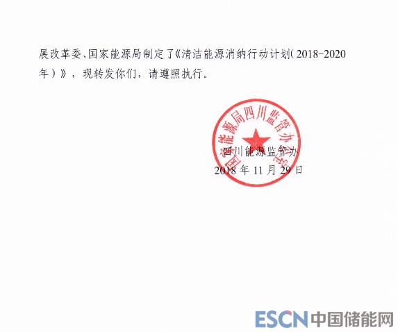 中國(guó)儲(chǔ)能網(wǎng)訊:11月29日,國(guó)家能源局四川監(jiān)管辦公室轉(zhuǎn)發(fā)了《國(guó)家發(fā)展改革委 國(guó)家能源局關(guān)于印發(fā)清潔能源消納行動(dòng)計(jì)劃(2018-2020年)的通知》,通知指出到2020年基本解決清潔能源消納問(wèn)題,并對(duì)各省區(qū)清潔能源消納目標(biāo)做出規(guī)定。