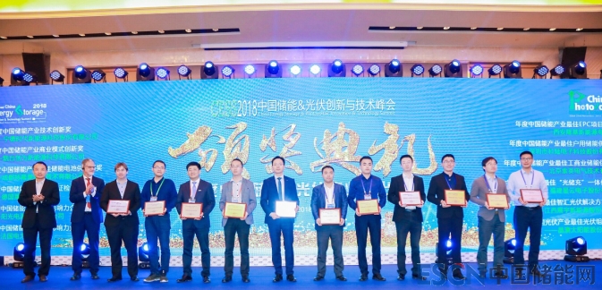 寧德時代CATL(左五)獲頒“2018年年度中國儲能產(chǎn)業(yè)技術(shù)創(chuàng)新獎”