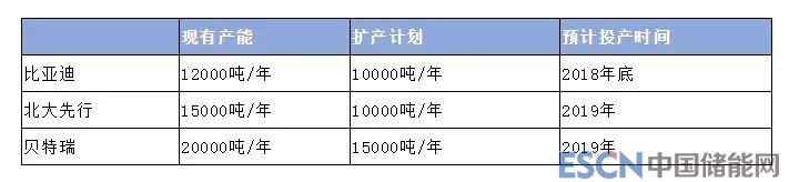 比亞迪似乎也有此考量。截止到2018年11月份,比亞迪的磷酸鐵鋰需求量仍然高達(dá)近2000噸/月,而實(shí)際自產(chǎn)量?jī)H僅能滿足其1/3的需求,大部分仍然需要外采,在未來(lái)的規(guī)劃中,比亞迪的月均需求量預(yù)計(jì)將達(dá)到3500噸/月,不管是為了保證自身產(chǎn)品的供應(yīng),還是考慮到原料來(lái)源的安全性上,擴(kuò)產(chǎn)都已經(jīng)勢(shì)在必行。