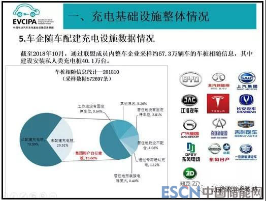 截至2018年10月,通過聯(lián)盟成員內整車企業(yè)采樣約57.3萬輛車的車樁相隨信息,其中建設安裝私人類充電樁40.1萬臺。