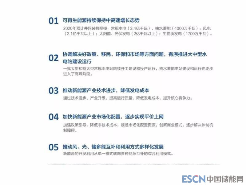 2018-2020中國可再生能源發(fā)展的前景:一是可再生能源持續(xù)保持中高速增長的態(tài)勢,常規(guī)水電和抽水蓄能、風(fēng)電、生物質(zhì)發(fā)展目標(biāo)與“十三五”目標(biāo)基本一致,太陽能發(fā)電較快,超過“十三五”目標(biāo);二是通過協(xié)調(diào)解決好政策、移民、環(huán)保和市場等方面的問題,有序推進大中型水電站的建設(shè);三是通過推動新能源產(chǎn)業(yè)的技術(shù)進步,降低發(fā)電成本;四是加快新能源產(chǎn)業(yè)市場化的配置,逐步實現(xiàn)平價上網(wǎng);五是推動風(fēng)、光、儲多能互補和利用方式的多元化發(fā)展。
