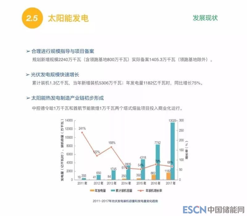 在太陽能發(fā)電方面,去年我國新增裝機5306萬千瓦,目前我國光伏發(fā)電累計裝機已達1.3億千瓦。同時,我國太陽能熱發(fā)電制造產(chǎn)業(yè)鏈也初步形成。2017年太陽光伏發(fā)電投資規(guī)??焖僭鲩L,比2016年增長了41%,同時單位千瓦造價部分已經(jīng)降低至每千瓦5500元以下,棄光的現(xiàn)象也得到了有效控制。