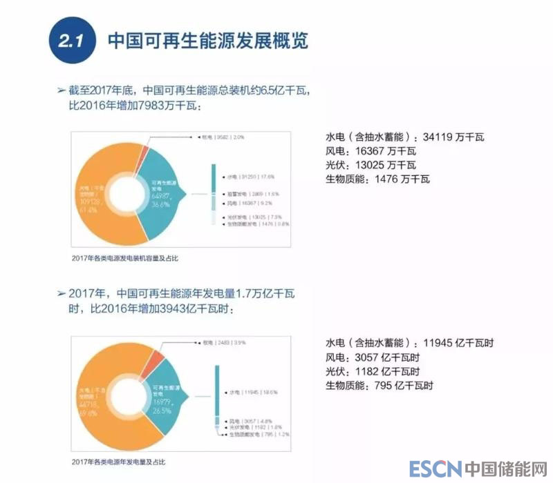 到2017年底,中國可再生能源總裝機容量約6.5億千瓦,占全國總裝機量的36.6%,可再生能源發(fā)電總量占全國發(fā)電總量的26.5%。